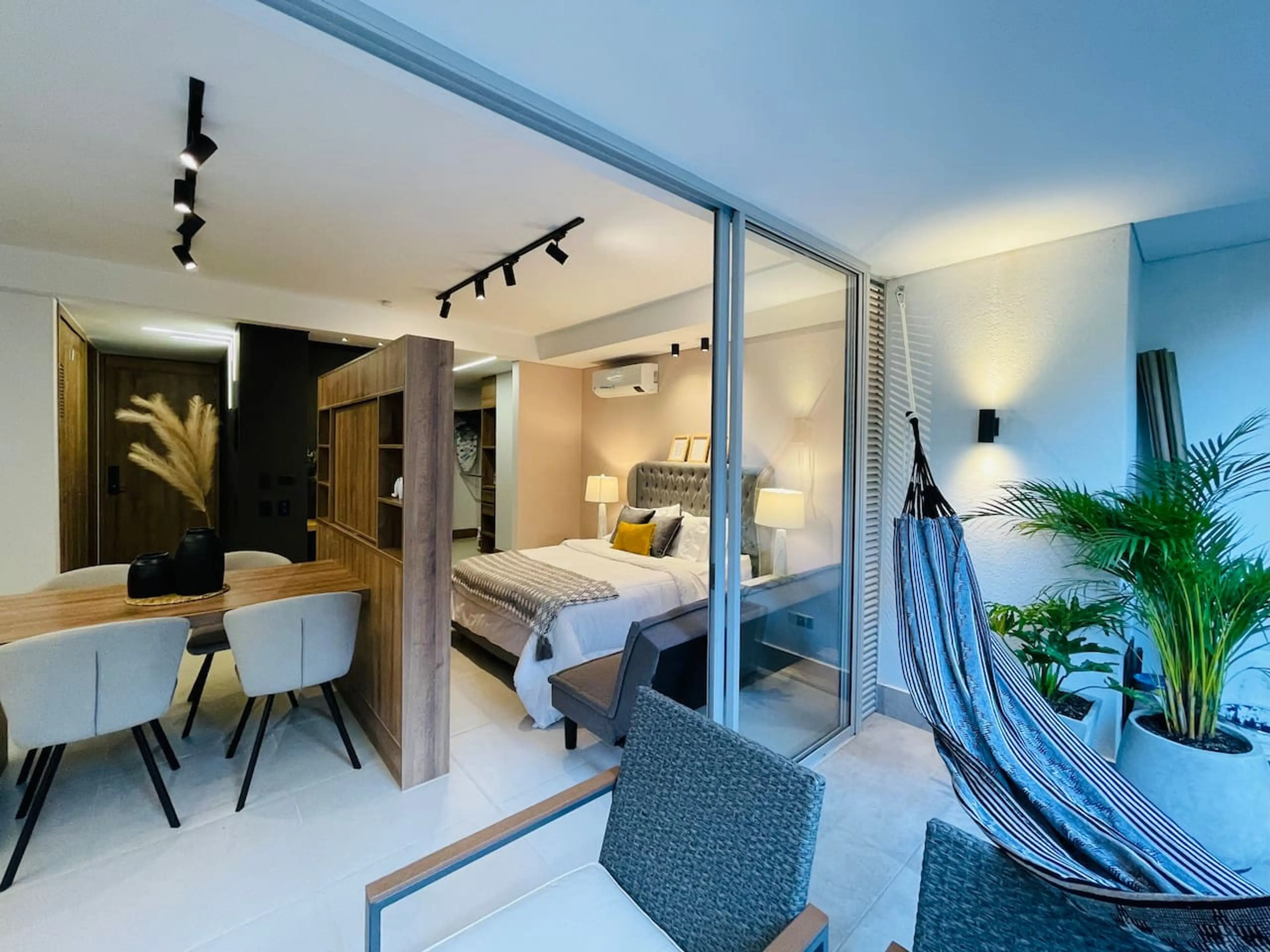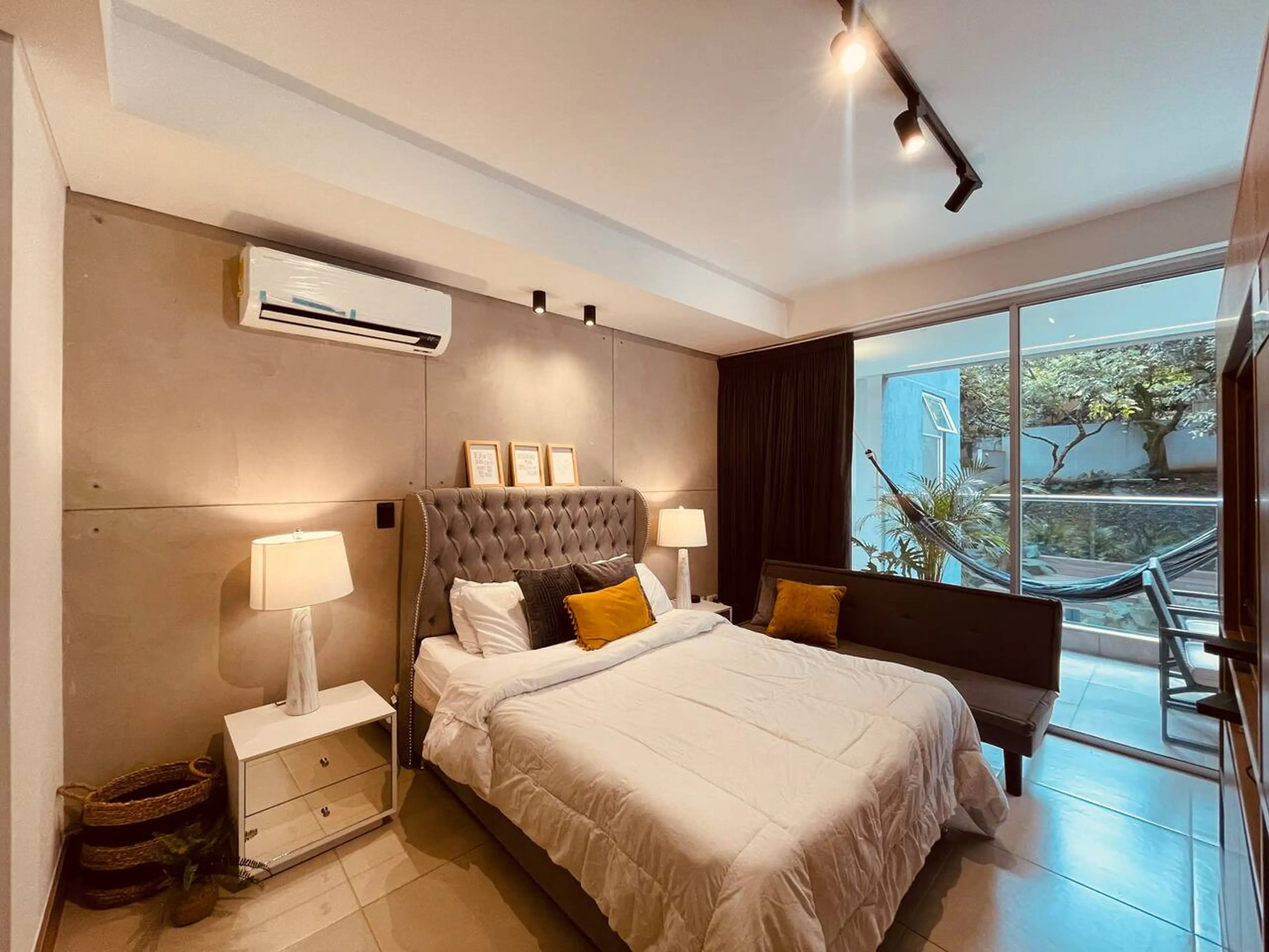 Wake up in Aurora's Loft, a stylish smart loft overlooking a peaceful green garden. Stay in Cali’s most exclusive and walkable area—just steps from Avenida del Río, Gato de Tejada, Granada, El Peñón, and top shopping malls. Enjoy a refreshing pool, coworking spaces, gym, game room, and full building...