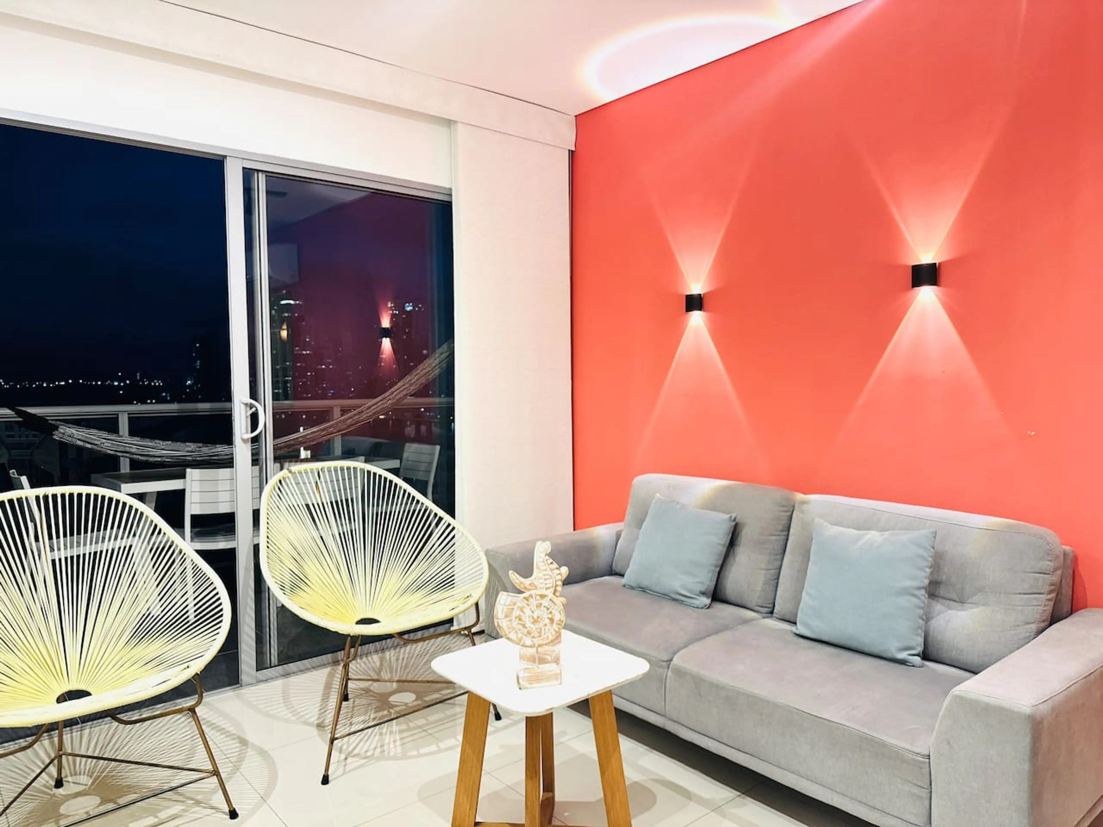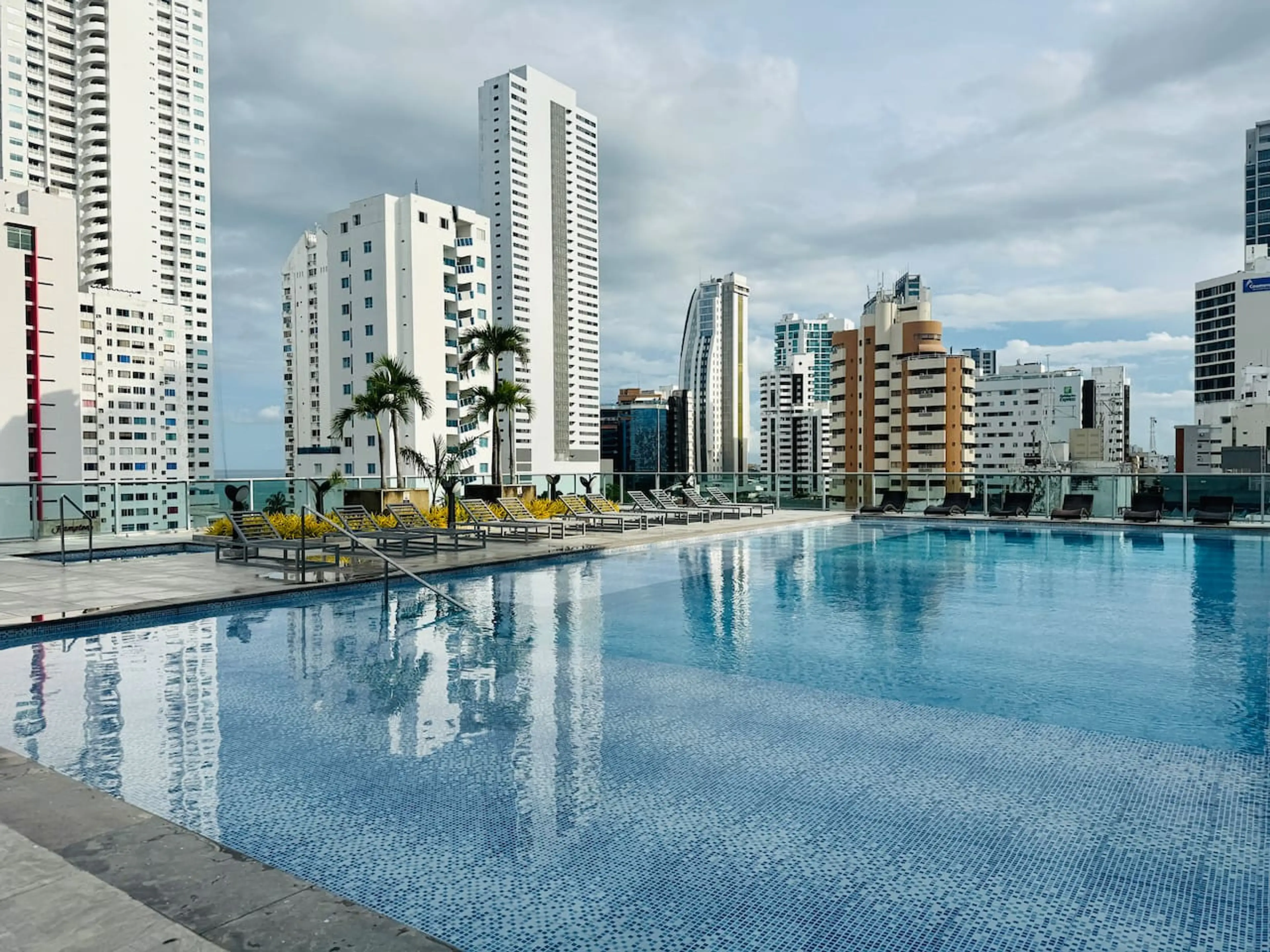 Disfrute de una hermosa vista al Skyline y bahía de la ciudad en nuestro hermoso apto con diseño interior exclusivo, y disfrute de la vida nocturna de la zona de Bocagrande, con gran variedad gastronómica y comercial. La playa la tendrás a solo 5 minutos caminando. Tendrás acceso a zonas comunes de ...