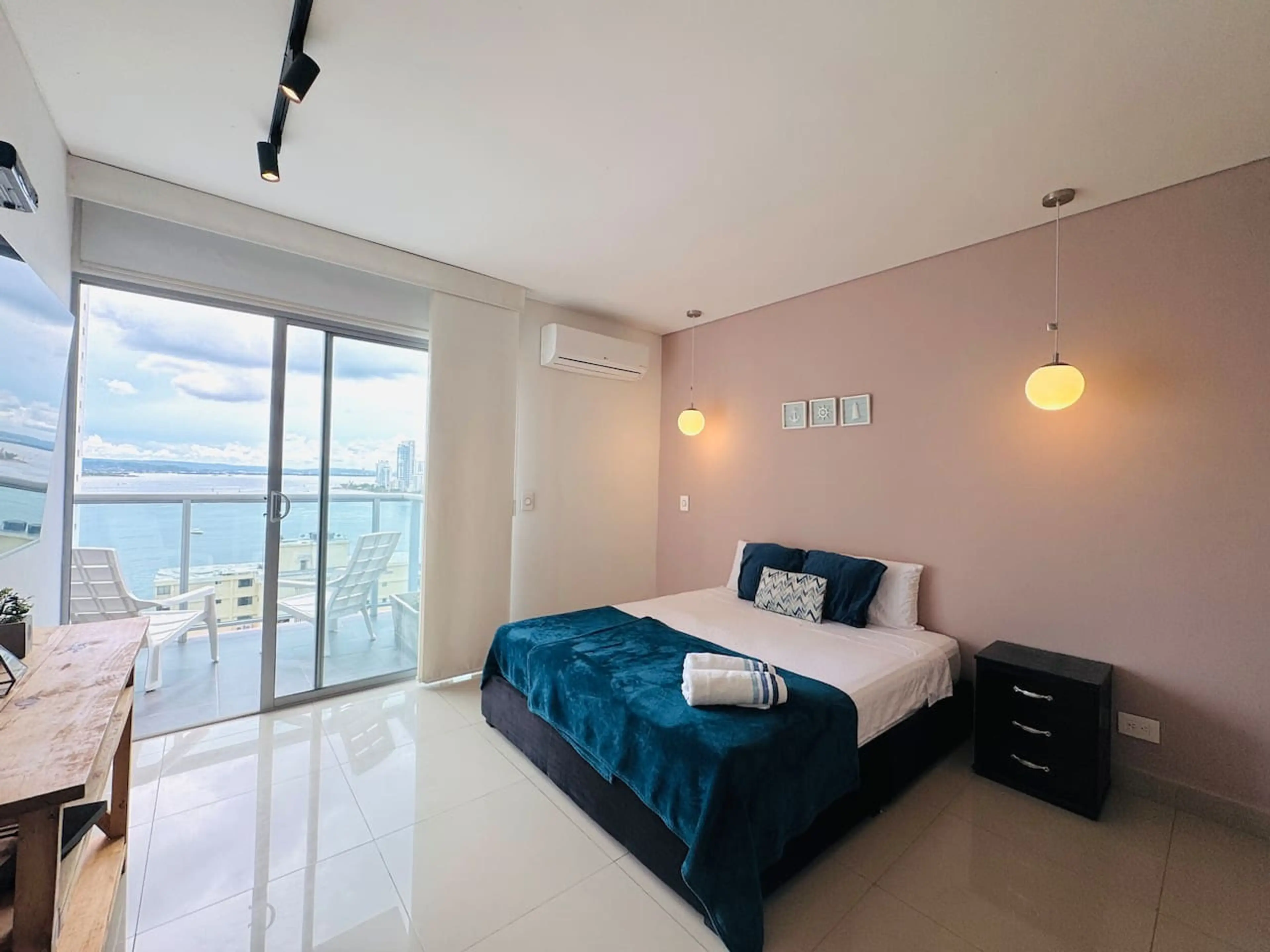Disfruta de impresionantes vistas al horizonte y a la bahía desde tu balcón privado en nuestro apartamento bellamente diseñado. Relájate en interiores elegantes con amplias salas de estar, una cocina totalmente equipada y acogedoras habitaciones para disfrutar de noches de descanso. A solo 5 minutos...