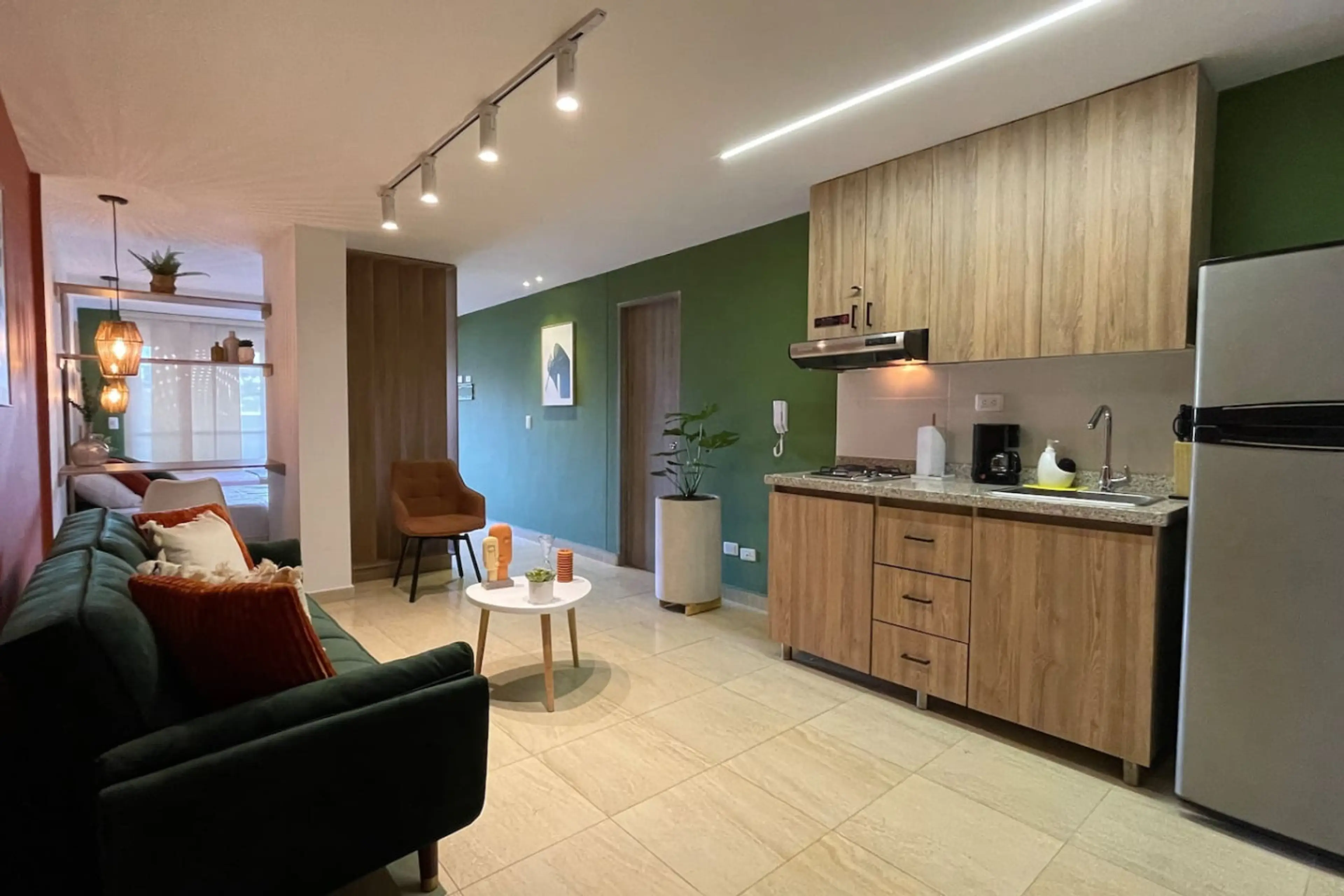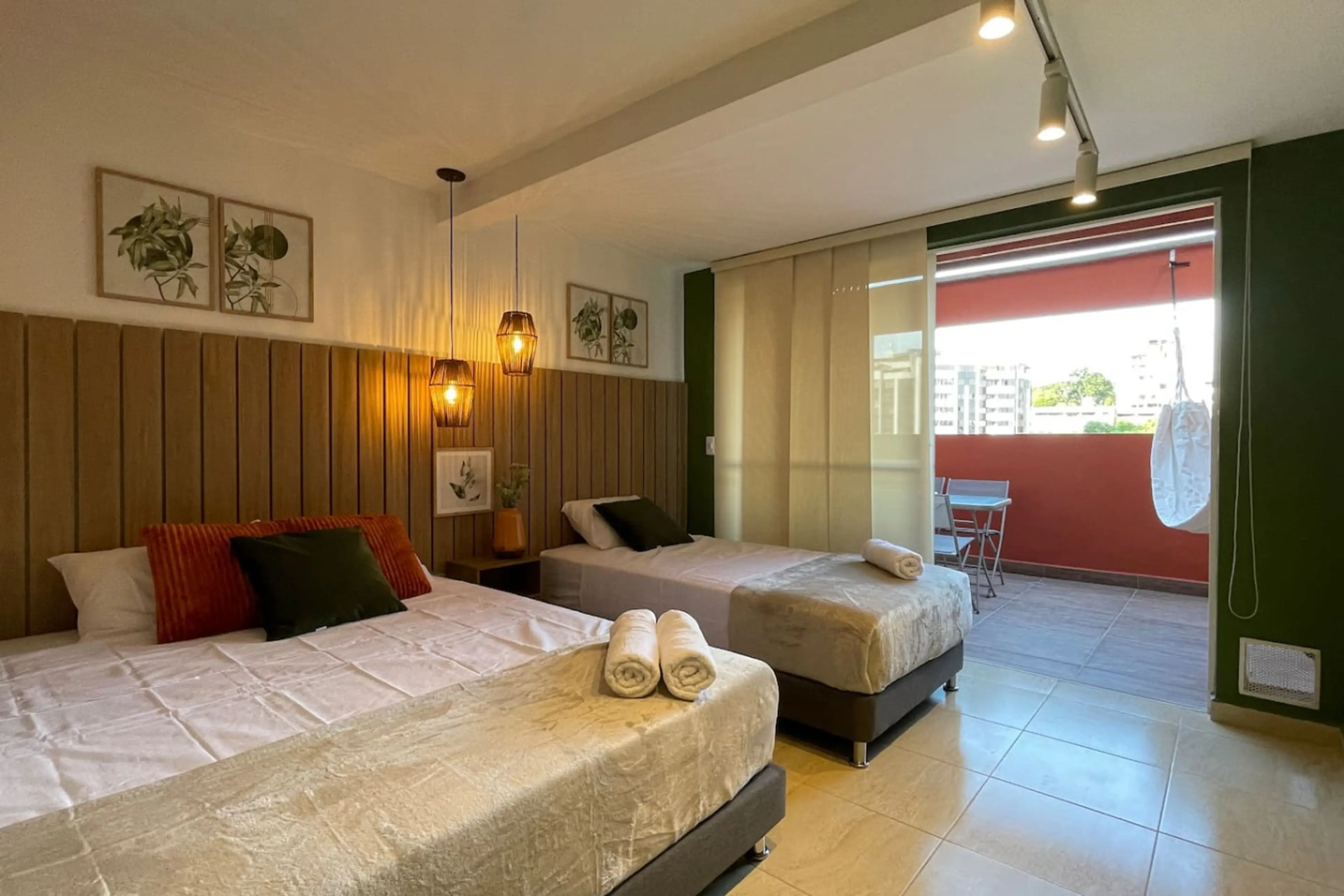 Este apartamento recientemente remodelado está diseñado para ofrecer frescura y comodidad. Tiene capacidad para 4 personas, con una cama queen, una cama sencilla y un sofá cama en la sala. Su decoración en tonos verde y terracota le da un toque moderno y fresco. Cuenta con un amplio balcón con hamac...