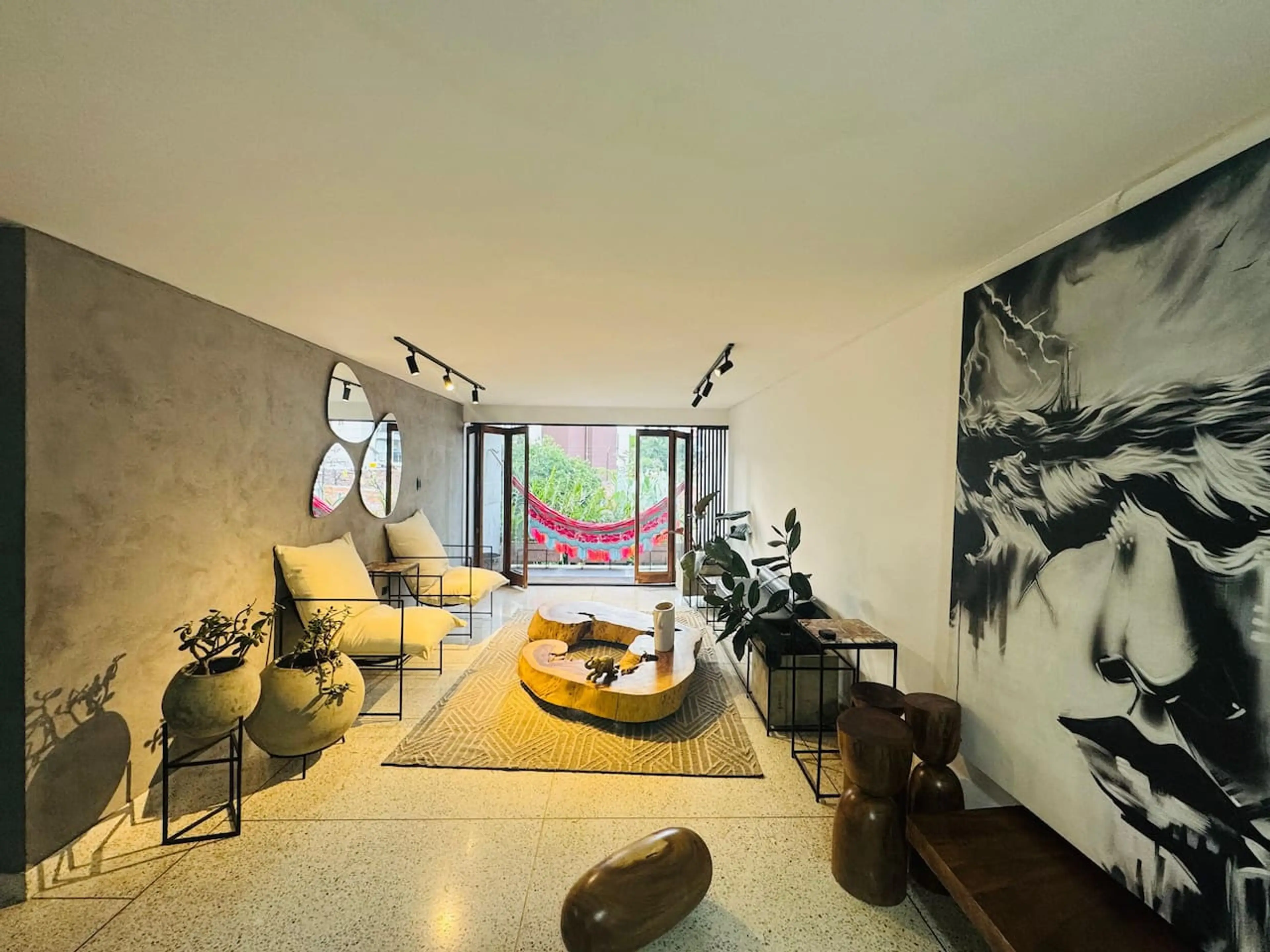 Disfrute de esta exclusiva casa de lujo en Santa Teresita, Cali. Diseñada por un arquitecto-artista, combina acabados rústicos de cemento con muebles de madera orgánica y una selecta colección de arte. Cuenta con 4 habitaciones con baño privado, comedor para 10 personas, cocina equipada, coworking y...