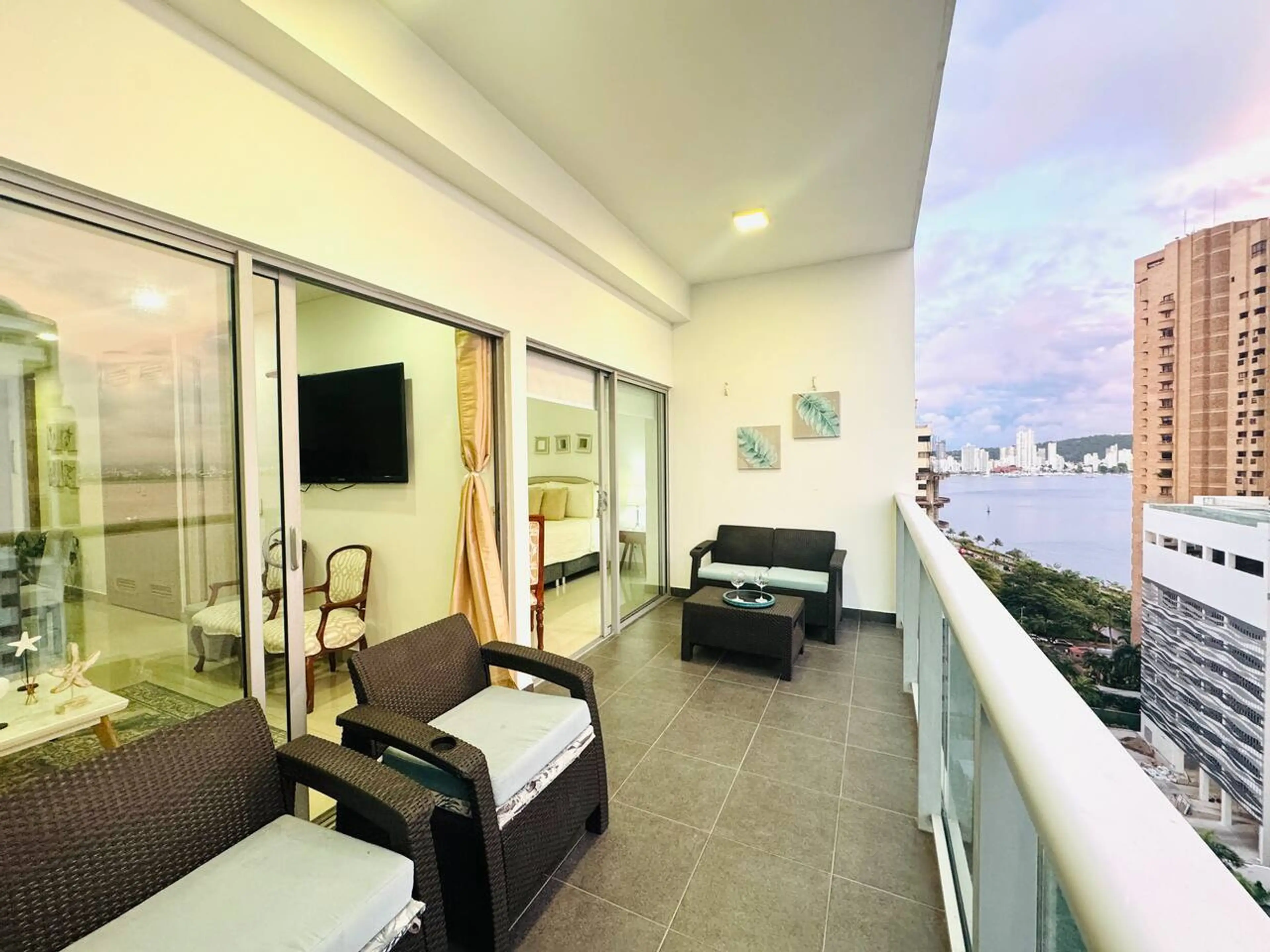 Apartamento con vistas a la bahía de Bocagrande | Balcón | Piscinas