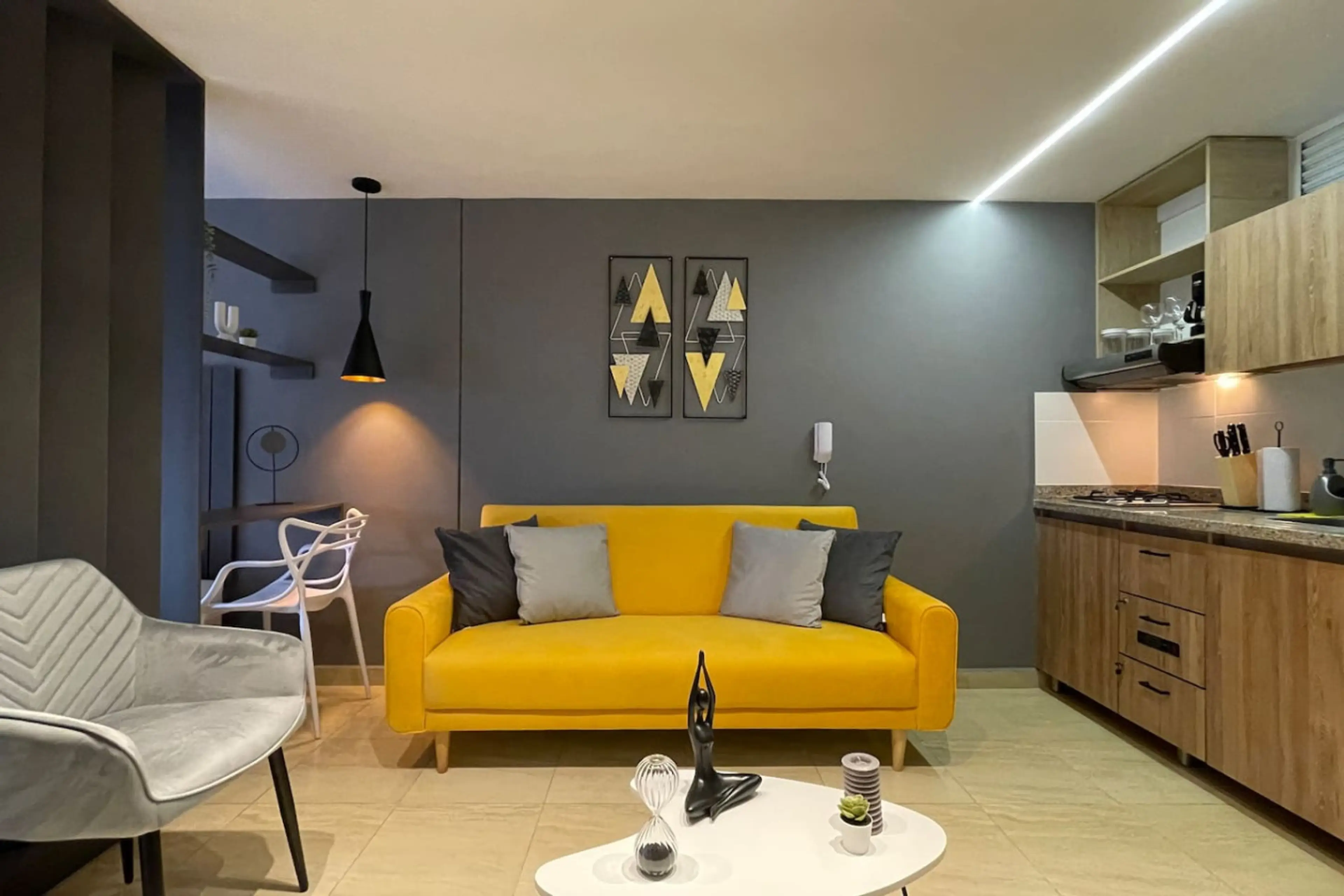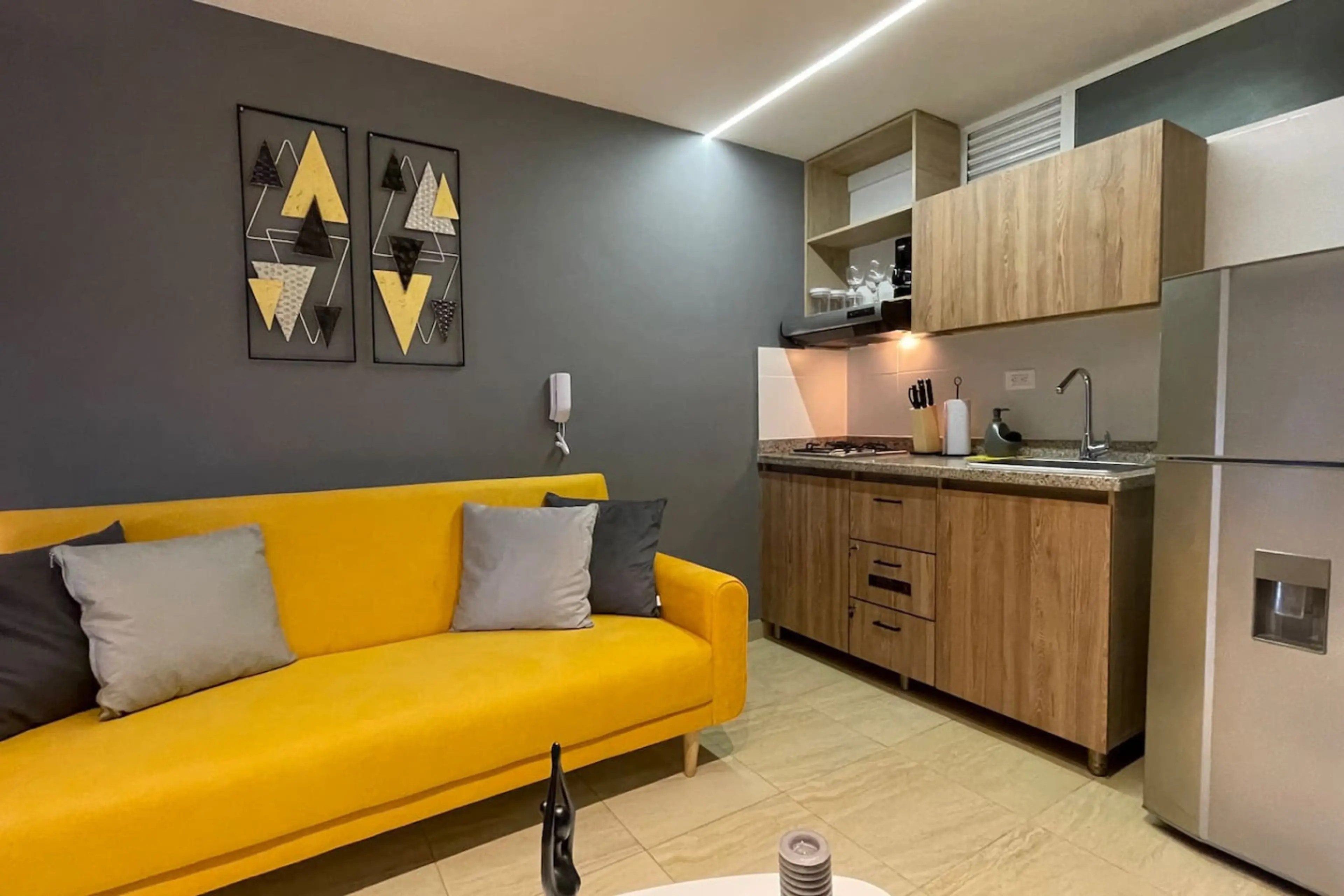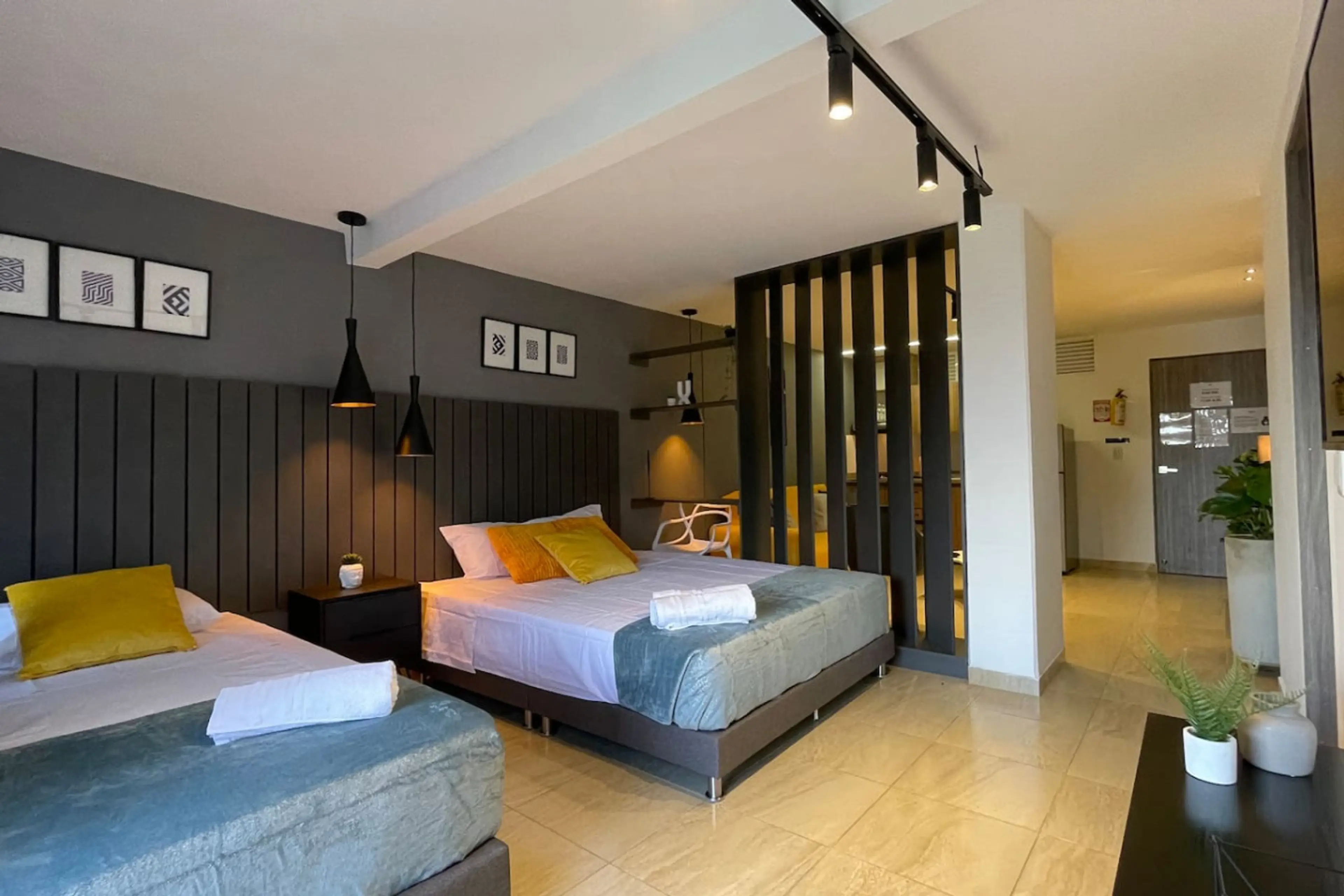 Este apartamento recién remodelado es ideal para 4 personas, con una cama queen, una cama sencilla y un sofá cama en la sala. La decoración rústica en tonos gris y amarillo le da un estilo moderno y cálido. Disfruta de un espacioso balcón con hamacas para relajarte mientras contemplas la brisa del o...