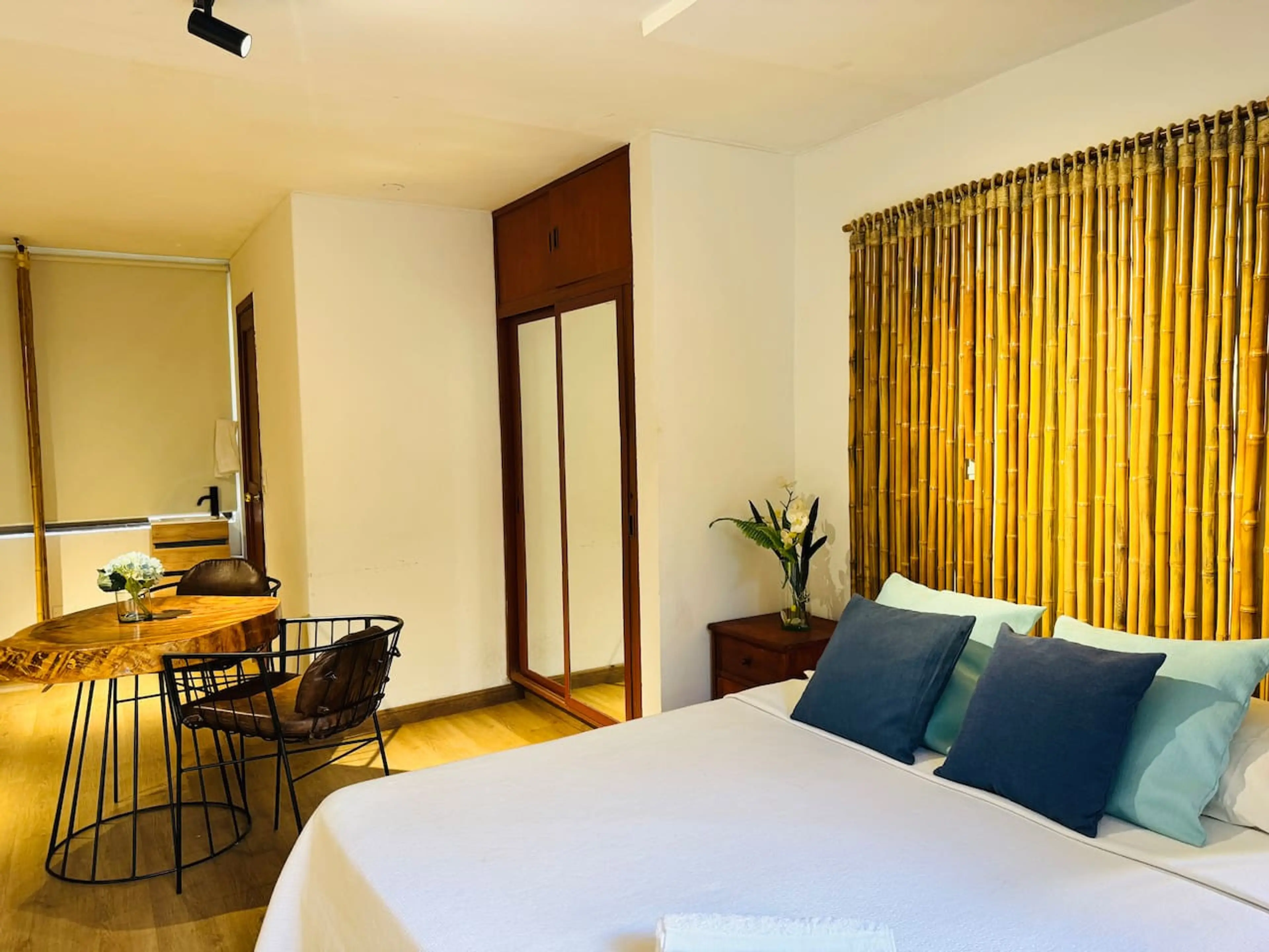 Enjoy a unique stay in this stylish studio in Miraflores, Cali, steps from Pascual Guerrero Stadium. Its warm, nature-inspired design creates a cozy atmosphere with a queen bed, kitchenette, private bathroom, and relaxing jacuzzi. Surrounded by cafés, restaurants, and attractions like San Antonio an...